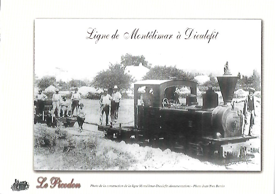 Une locomotive WEIDKNECHT 021T, portant le n° 6, fût utilisée pour la construction de la ligne (elle arriva à Montélimar en avril 1892) ; la base de stockage des matériels et matériaux était la gare de Montélimar- Espoulette.